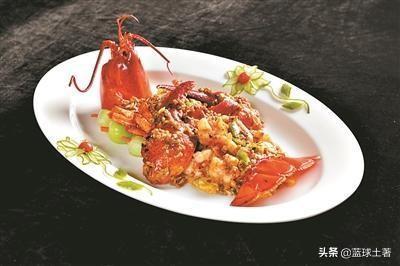 龙虾界的扛把子,咸,香,爽,绝对能满足您的味蕾,超级好吃。通常选用不大不小的波士顿龙虾,做法上先炸后炒,将龙虾尾切成1寸左右的肉段,留壳,用盐和大蒜略微腌制一下,放入热油中炸直到贝壳发红后捞出,另起锅灶加入切碎的葱姜和猪肉、龙虾块爆炒,再用酱油、糖、料酒调味,加少量高汤(一般为鸡汤)烧开直至汤底浓稠入味,最后倒入一个打散的蛋液翻炒均匀,即可出锅。