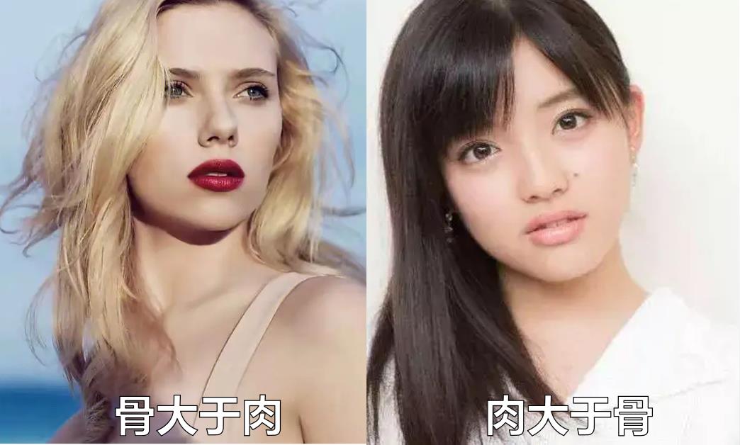 看脸的人注意力都在轮廓,虽然各自审美不同,比如有人喜欢清纯的大眼睛,有人喜欢性感的厚嘴唇,但大体都逃不开一个面部整体,那就是喜欢紧致的显年轻的清晰线条,而不喜欢垮塌下垂的模糊轮廓。从这点上看,俄罗斯的女性有着明显的优势——她们大多都是欧美画风中偏向“骨大于肉”的长相,而不是亚洲人普遍的“肉大于骨”的长相,不清楚的人看这张图就能对比出来了。前者的长相,无论从正面、侧面,肉眼看起来都有着很清晰的线条和紧致的轮廓感,符合大部分人对于“美女脸”的认知。