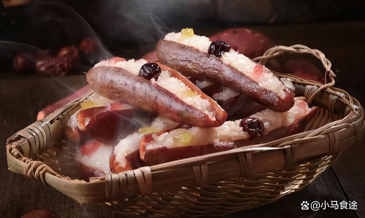 小红薯看着不起眼,也可以用它来制作高档菜品,糯米的软糯加红薯的粉糯,二者搭配,用烤来烹制,香甜好吃,既可以当菜也可以当馋嘴小吃,真是绝绝子。
