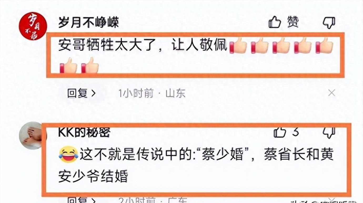 网友们看后调侃表示十米的长剑抽出,削了个苹果作为随礼。还有网友评论道:“黄安同志,辛苦了,把你老婆管好,中华统一就看你的了”