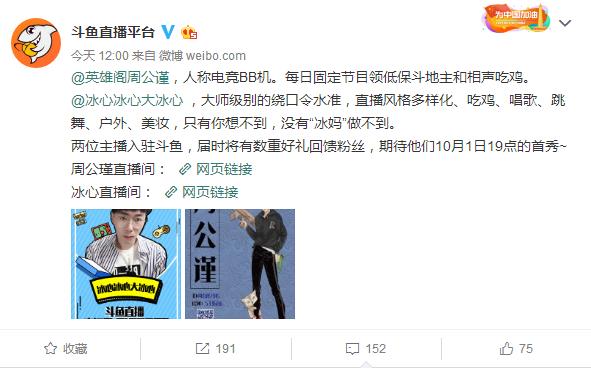 近日,又有两位人气主播将要入驻斗鱼了,他们就是周公瑾和冰心。