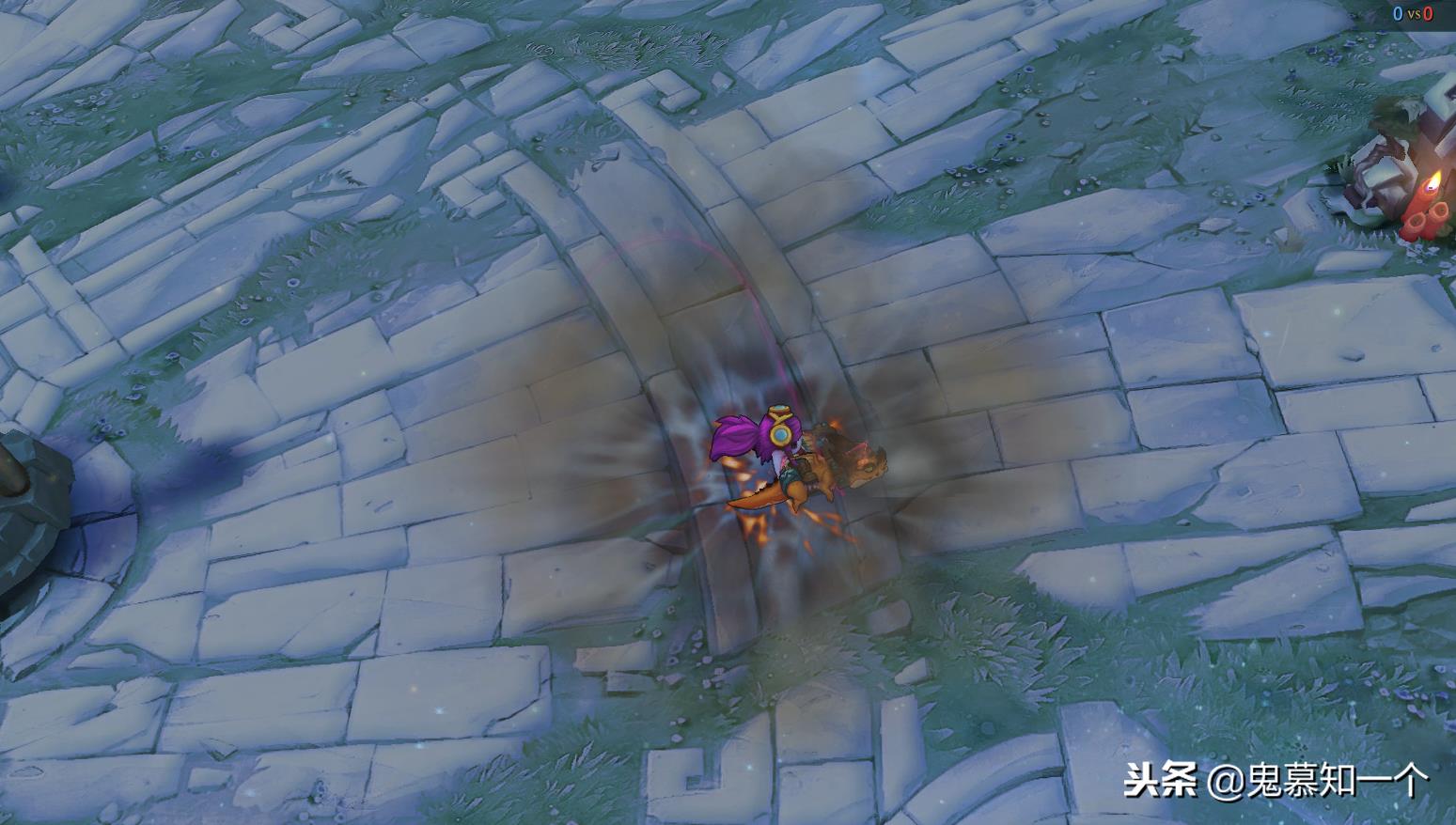 然后再看一下那个小炮 w 的特效,毕竟对于小炮来说,他在中期的时候真的是非常依赖这个 w 收割。如果说玩的好的话,经常可以看到这个效果的,看一下这个特效应该算是一个非常一般的特效,并不是特别的好看。因为他算是一个整体比较偏灰的特效。从特效上来看的话,只能给他一个评分,也就是一个六七分的水平。如果说太高的话,也是不太好的。毕竟在这个冰雪节地图上,我们可以看到跳起来之后肯定不是特别的漂亮。