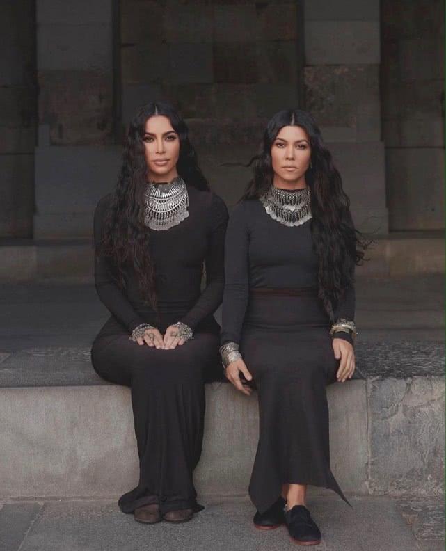 卡戴珊姐妹已故父亲罗伯特 ·卡戴珊是亚美尼亚籍美国人,所以她们对亚美尼亚有种特殊情怀。大姐考特妮也参与了这次家庭之旅,姐妹俩穿上代表虔诚的黑色服饰,拍下了这组照片,此前金·卡戴珊并未曝光该照片。姐妹俩穿上一样的衣服,虽然很相似,但也暴露了各自的身材缺陷。