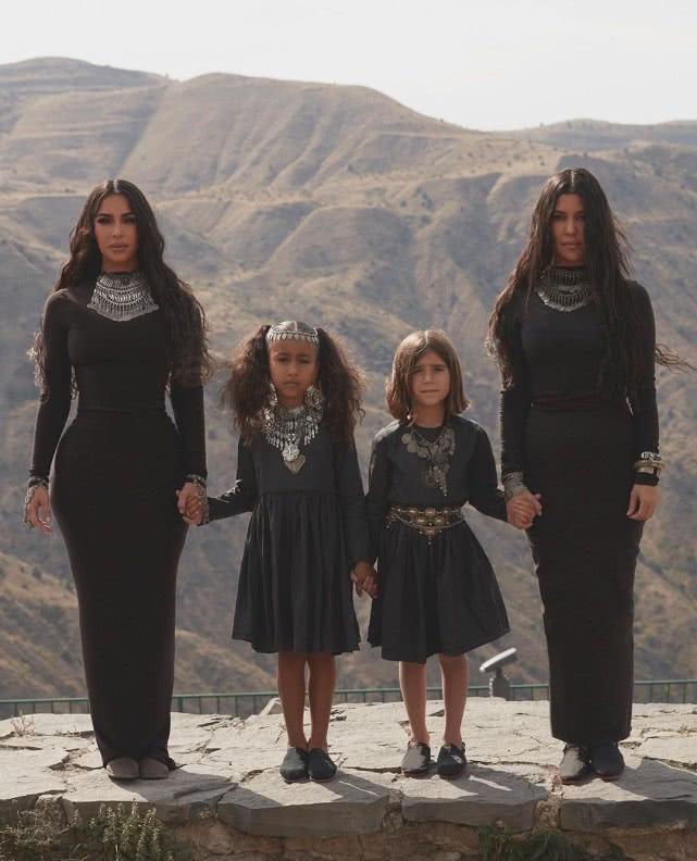 卡戴珊姐妹情深,她们的女儿也是彼此的好姐妹,照片中金·卡戴珊的大女儿诺斯与小表姐佩内洛普手拉手,与妈妈们合影,卡戴珊家族的两代姐妹一样感情深。