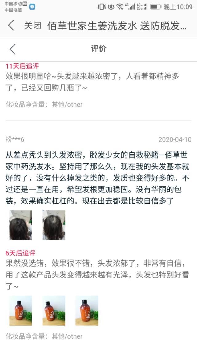 无意中在某宝看到佰草世家洗发水,不仅便宜(只有6元),而且买家17万,关键我看到那么多评论,出于好奇进去看看,难道真的用它都能长出新头发??总得有“负面消息”吧,呵!点进去清一色的好评,而且有很多所谓美女晒。我差点就相信了。但看了这个评价,我一下就心灰意冷了。