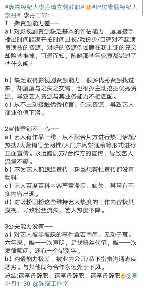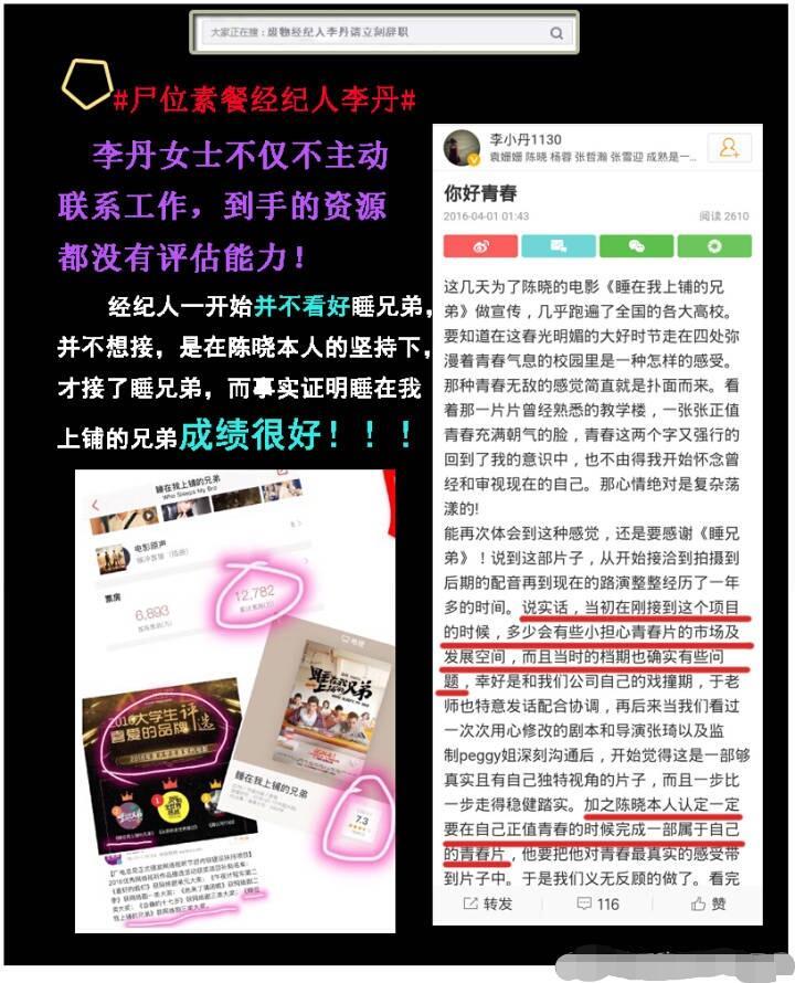 陈晓粉丝也撕团队经纪人了!原因有点多一、撕资源能力差;二、宣传营销不上心;三、公关能力没有!