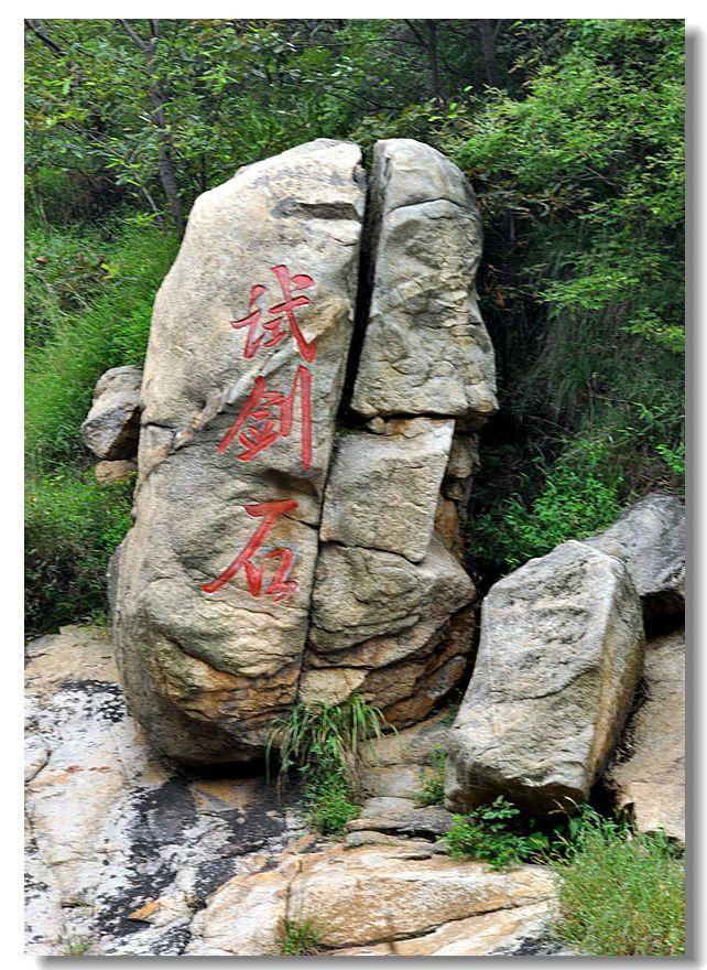 关于湛卢剑,传说还有一个试剑石,欧冶子铸成宝剑之后,为了测试这把剑够不够厉害,就挥起宝剑向一个巨石砍去,巨石当场就裂开了!因此有了“一剑挥落巨石分“的传说。虽然这个试剑石的事不知道真假,不过湛卢剑的锋利无比,在《吴越春秋》里是得以肯定的。