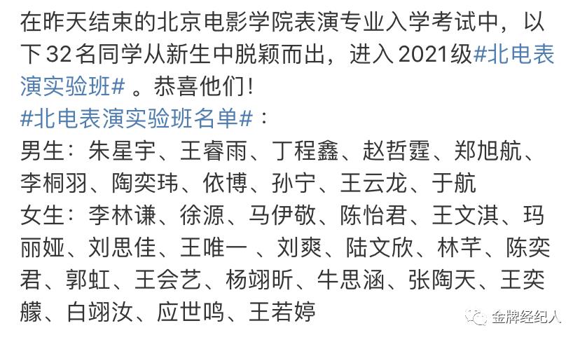 随着北京电影学院表演班学生名字的曝光,被选入实验班的32人也受到了大家的关注。