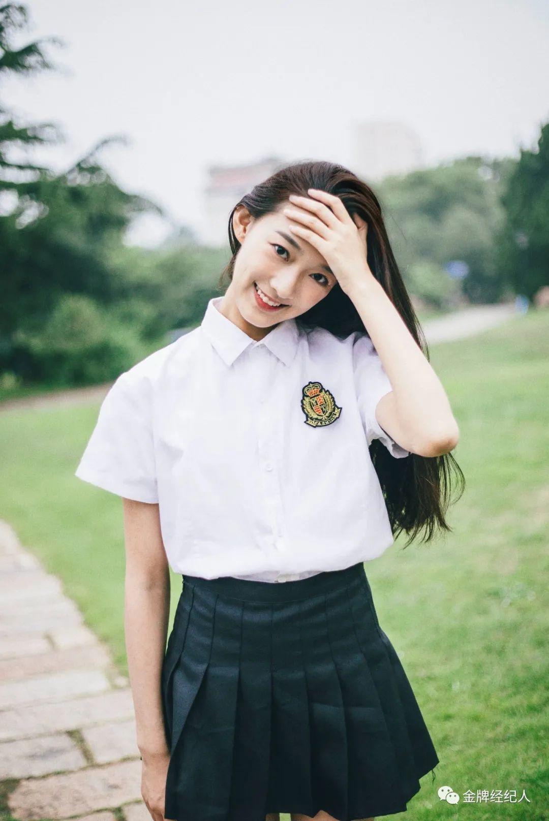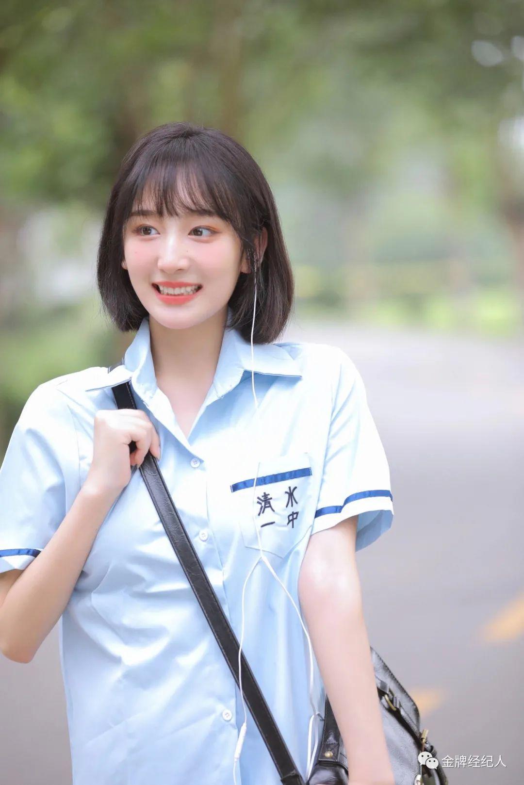 瓜子脸、五官精致的她有着清纯校园女神的气质。