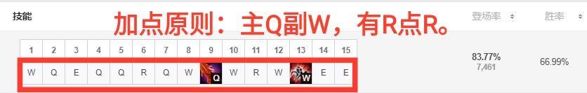 伊莉丝的加点方式遵循:主Q辅W,有R点R的原则。