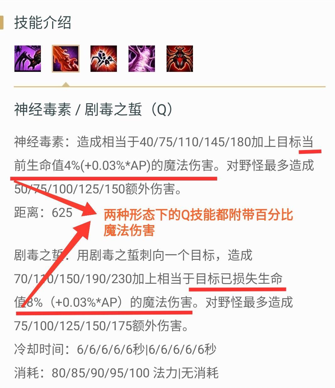 Q技能(神经毒素/剧毒之蛰):主要伤害技能,百分比额外掉血