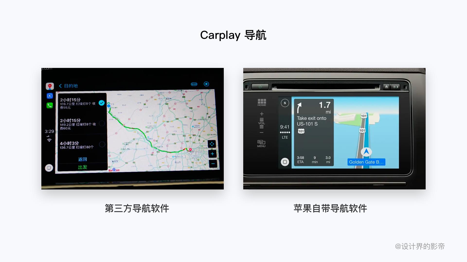 苹果发布会上的Carplay看上去虽然视觉上还是蛮不错的,因为苹果的设计风格一直都很在线,但是车载系统的设计不仅仅止于好看,这个观点我一直都会跟大家讲到,如果苹果只是想通过视觉和功能方面来考虑做智能座舱的话,那肯定是不行的。