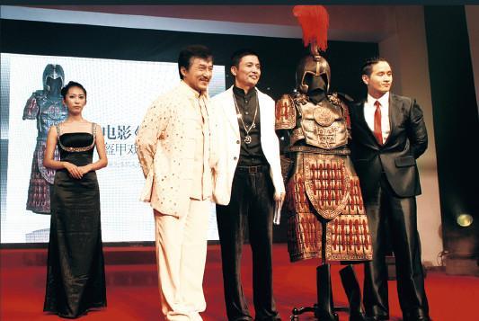 2009年9月,黄德锋(左三)在北京一场慈善拍卖会上,以218万元拍下成龙在电影《神话》中穿过的盔甲。
