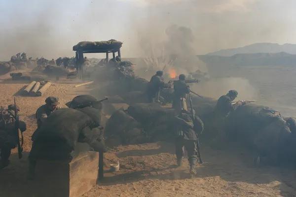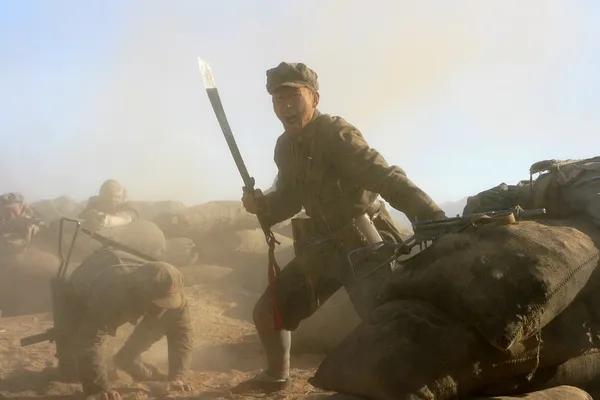 于是在强大的火力掩护下,敌人潮水般的扑向红军的阵地,他们一改“双枪兵”的萎靡,发了疯似的向前冲击。除了“重赏之下必有勇夫”外,他们的后面,站着宋华轩的军官督战队,发现有后退者,当场处决。