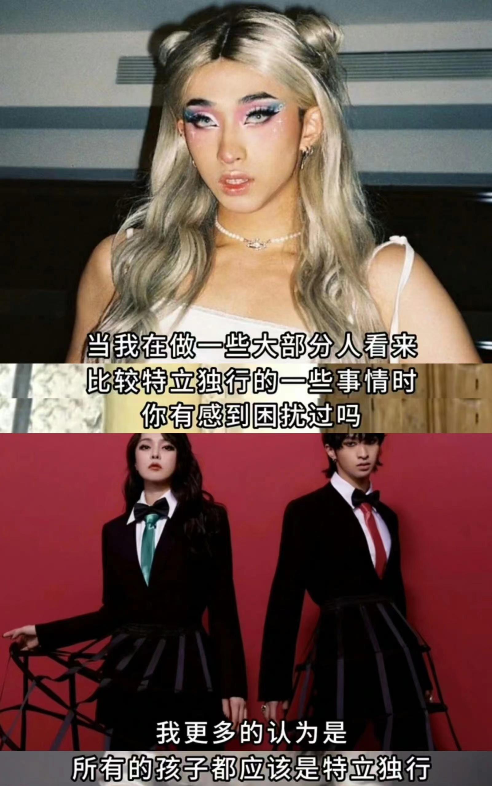 “是因为有千千万万的阳刚男性在守护着我们,替我们前行,替我们牺牲,你才有资格谈所谓的独一无二的做自己,不管怎么独一无二的奇异怪装,但至少要做为公众人物做出正能量的表率,还有千千万万的青少年要心身健康阳刚的成长!”