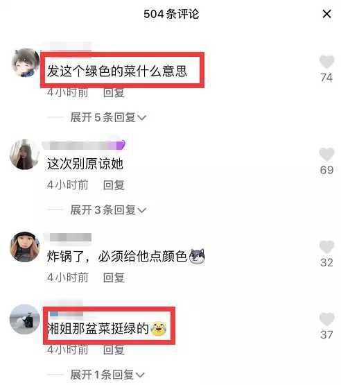 画面一出网友纷纷评论:绿了#这是内涵吗#这盆菜挺绿的等等。