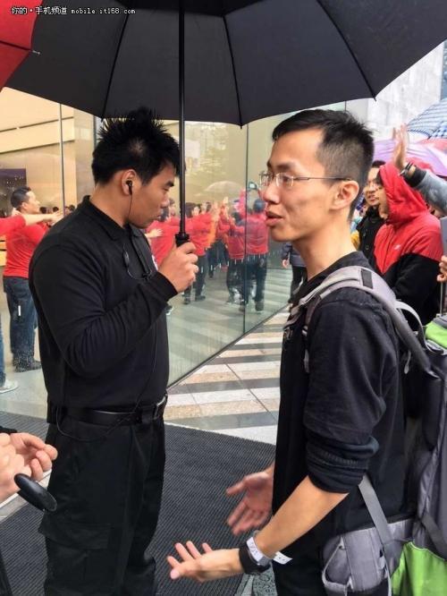 现场排队的果粉多达数百人,其中排在队首的这位朋友堪称教徒典范。据说他在凌晨4点来到现场排队,要知道凌晨的广州可是非常湿冷的。