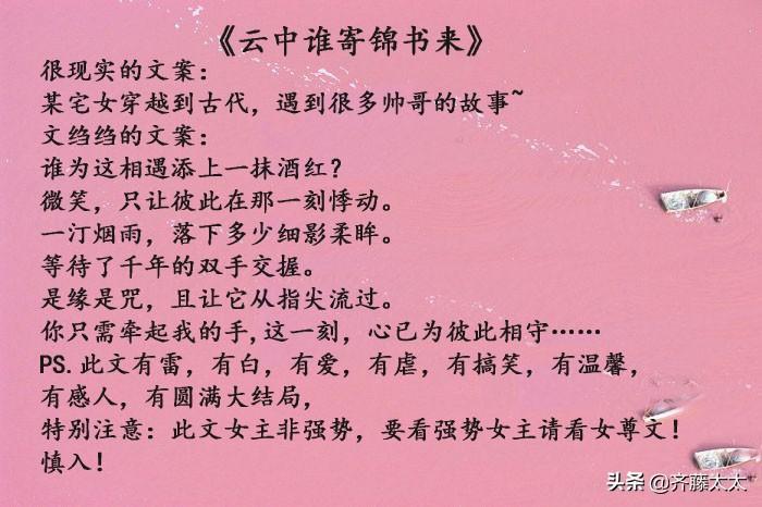 第十本《云中谁寄锦书来》那本貌似是作者的处女作,虽然相对后期文笔略稚嫩,不过很多小可爱说也很好看,书评区也是一片和谐,所以也推荐一下!