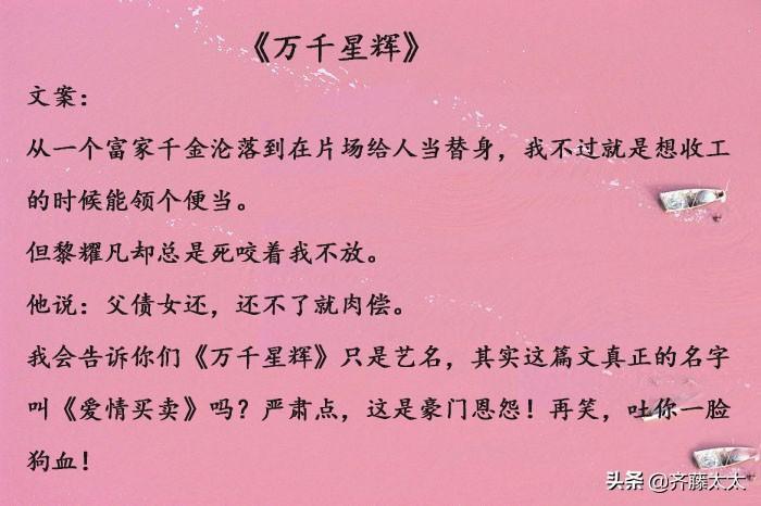 除了《万千星辉》《壕,别和我做朋友》还没看,另外几本都看过了,延续大大一贯脑洞大开的小白文套路,小闹怡情哈哈,不要较真,喜欢逗比轻松风小甜文的阔以入坑!
