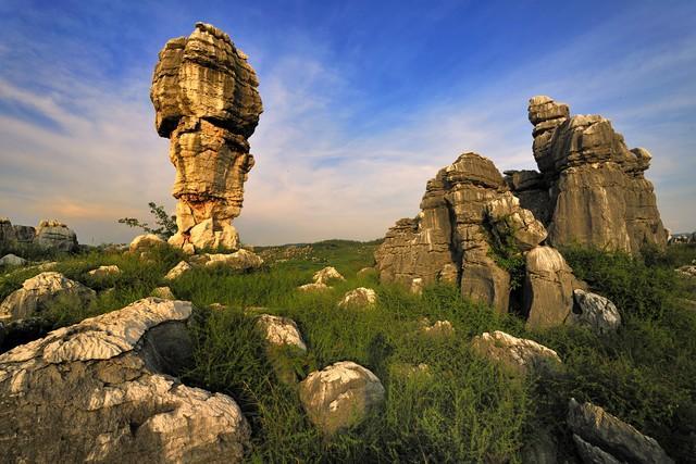 九、阿斯哈图石林景区,位于赤峰市阿斯哈图旗。国家五级旅游景区。亿万年前的远古密码被遗落在这片草原上的石林中。