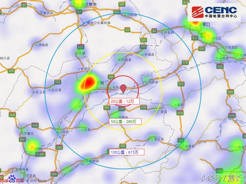 震中周边热力分开发布