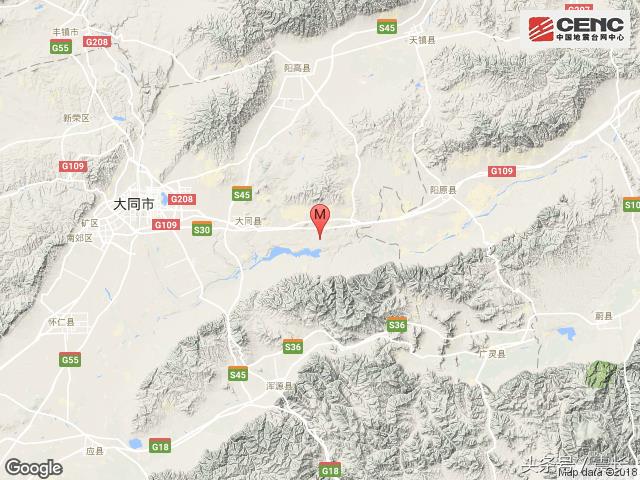 震中所在的大同县,隶属于山西省大同市,属晋冀蒙交汇之地,下辖辖7个乡、3个镇和3个街道办事处,2013年人口约19万人。大同县是中国黄花之乡、国家火山公园和生态休闲胜地。