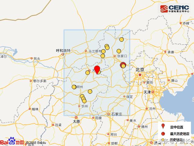 过去五年,山西大同共发生三级以上地震1次,就是2013年2月22日在阳高县发生的3.3级地震。根据中国地震台网速报目录,震中周边200公里内近5年来发生3级以上地震共13次,最大地震是2014年9月6日在河北省张家口市涿鹿县发生的4.3级地震(距离本次震中139公里),历史地震分布如图。