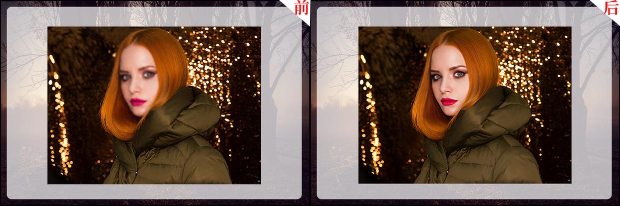 这样看大家可能感觉不到什么,下面小意将前后2张图片做成对比图,大家就可以看的很清楚了,可以看到右边的脸部有点模糊,处理过后就变得非常清晰明亮