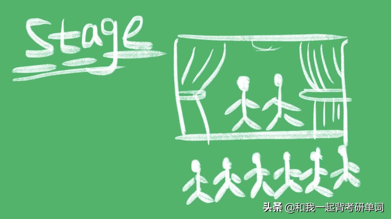 stage,人们长时间待着的地方——舞台,还指阶段、发展时期、火箭的级、上演、演出、举办、组织。