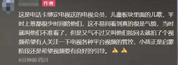 近日,四川一网友发视频称,回家看到孩子在看电视,电视上正在播放一首耳熟能详的儿歌《上山打老虎》,但这首儿歌的歌词被改编,涉嫌诱导孩子说脏话,且有暴力倾向。