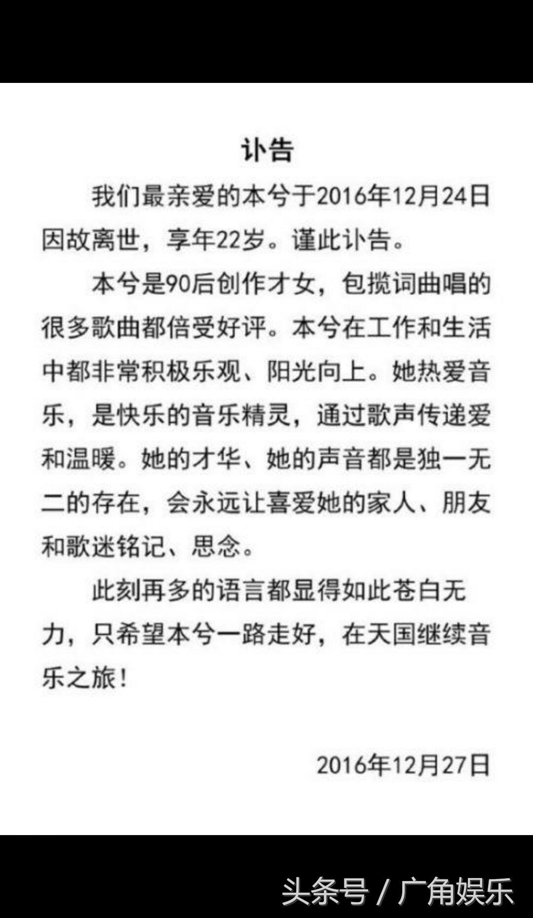 本兮的工作室今天发了讣告,但是对于她的死因并没有指明,仅用了“因故离世”来说明,所以对于是不是因为抑郁症,希望大家也不要过多去揣测。