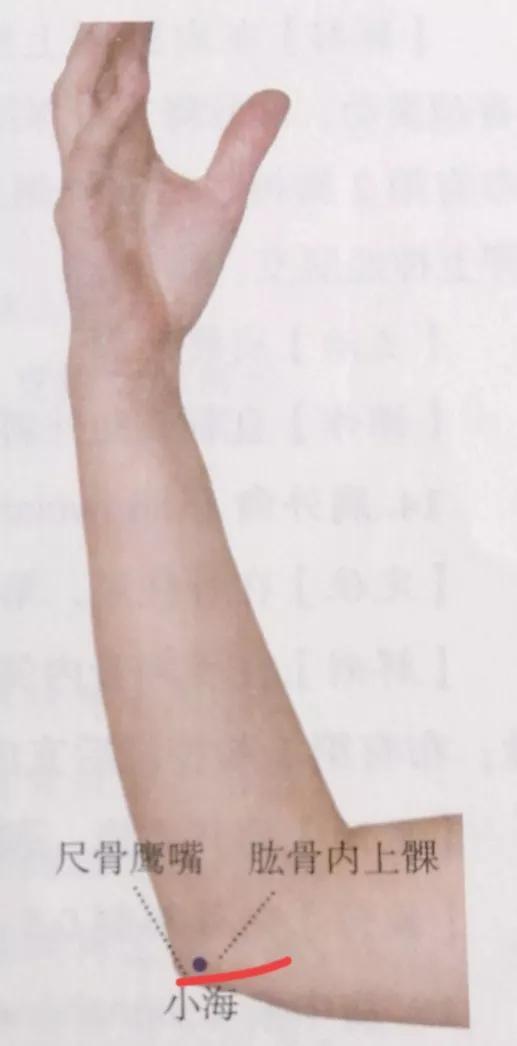 小海穴归属手太阳小肠经,为小肠经之合穴。具有清热祛风,疏肝宁神,镇静止惊,活血通络的作用。