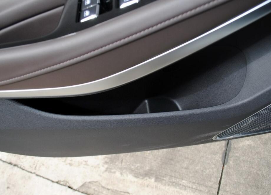 4、前排储物空间一般;虽然中央扶手箱表现不错,但门板内侧仅能储藏一瓶矿泉水,实用性一般,中控台下方的手机储物格深度一般,如果能进一步加深,相信实用性会大大提升。