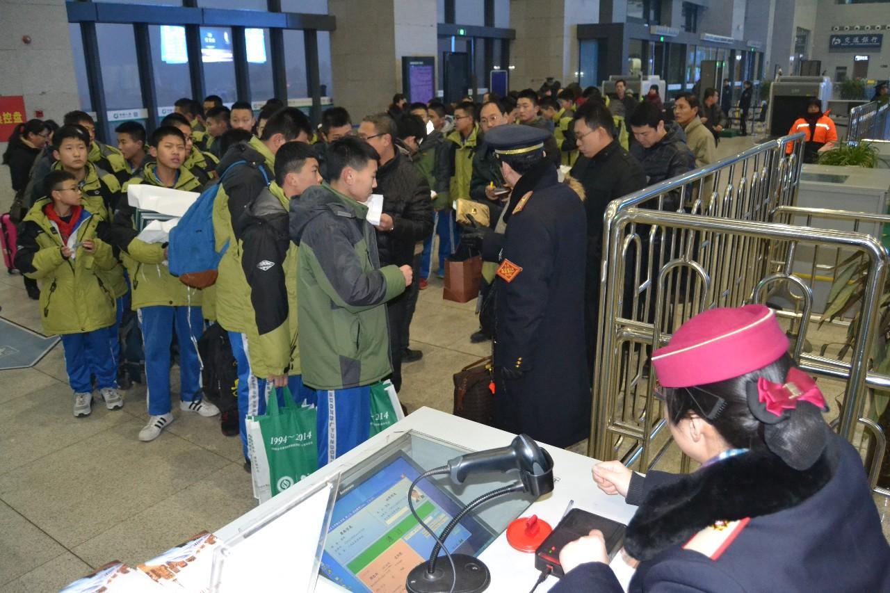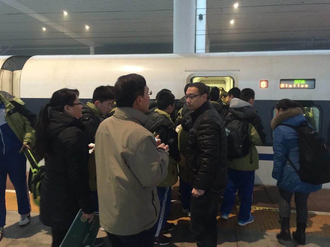 7点45分,英华学校60多名学生上车,将乘“邢台号”分别前往石家庄、北京游学。带队教师称,能赶上“邢台号”首发,感觉很高兴,也能让学生感受到作为邢台人的自豪。