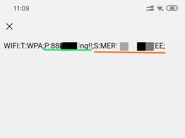 下面标有绿色线条的部分(前面的不用管),“P:WIFI密码;”。