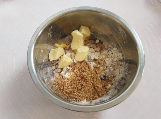 4.加入切成小块软化好的黄油,红糖粉,蜂蜜