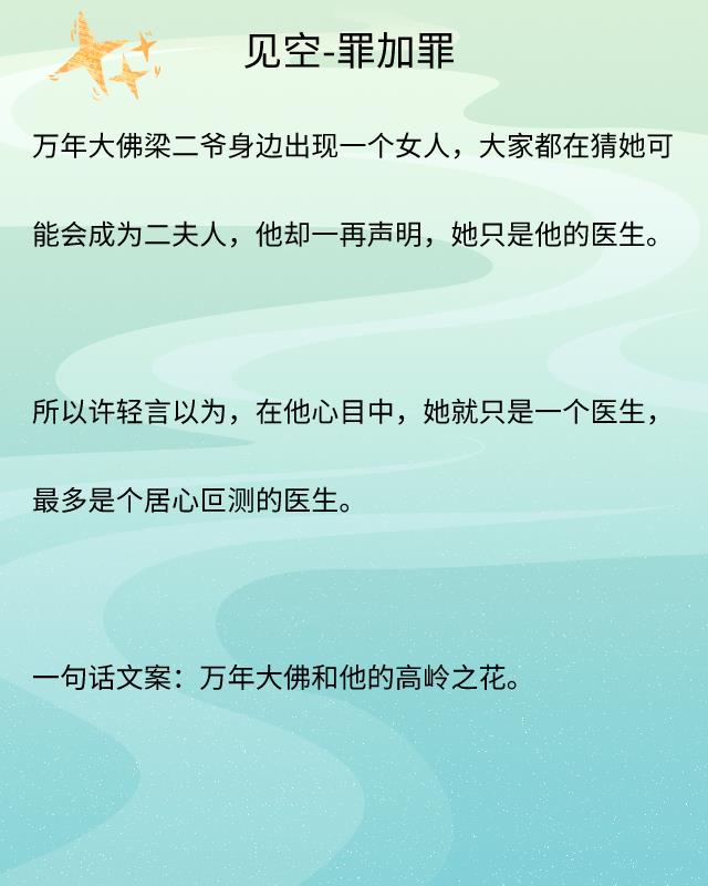 两人其实是恋人,梁见空为了保护许轻言成为黑帮二公子,更是伪造死去,让许轻言以为她的白月光已经去世。