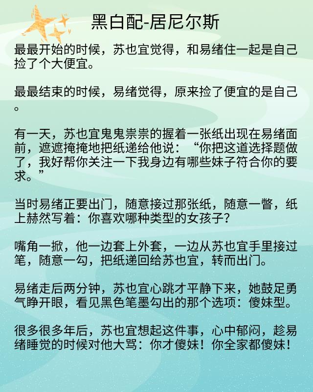 《黑白配》讲述的是苏也宜与易绪的爱情故事,是乖巧软妹女主与高冷腹黑男主的暗恋成真。