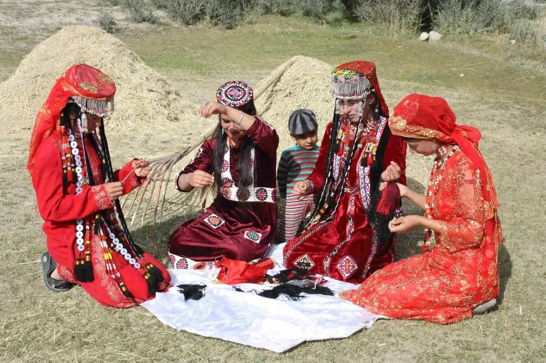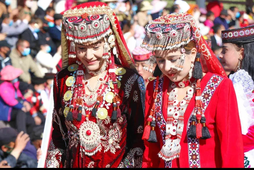 塔吉克族的服饰也非常有特色。男性通常穿着白色的长袍和帽子,女性则穿着色彩鲜艳的长裙和头巾。这些服饰都充满了浓郁的民族特色,既体现了塔吉克人民的传统和文化,也展示了他们对生活的热爱和对美的追求。