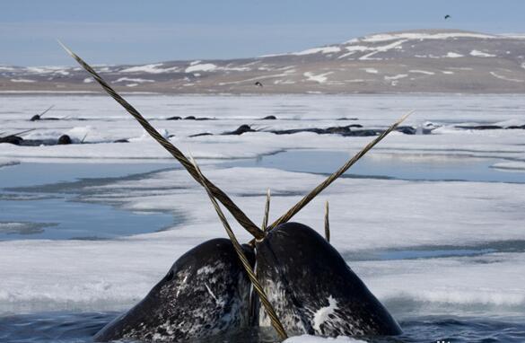 一角鲸,又称独角鲸和长枪鲸,不规则地分布在北极水域和北大西洋。虽然名为“独角鲸”,但它前部伸出的那根长长的东西并不是角,而是牙,其长度最长可达2.7米。一角鲸是深层的潜水者,它们会在海洋各层深度觅食,主要捕食远洋鱼类(特别是鳕鱼)、鱿鱼、虾、以及底栖生物。一角鲸寿命可达50岁。