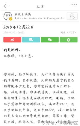 从那个时刻开始,沉珂这个词变得很神秘,因为没有人知道她到底是死了还是活着。直到2015年12月22日,一个名为“幽灵木偶偶”的微博博主发了一篇文章。