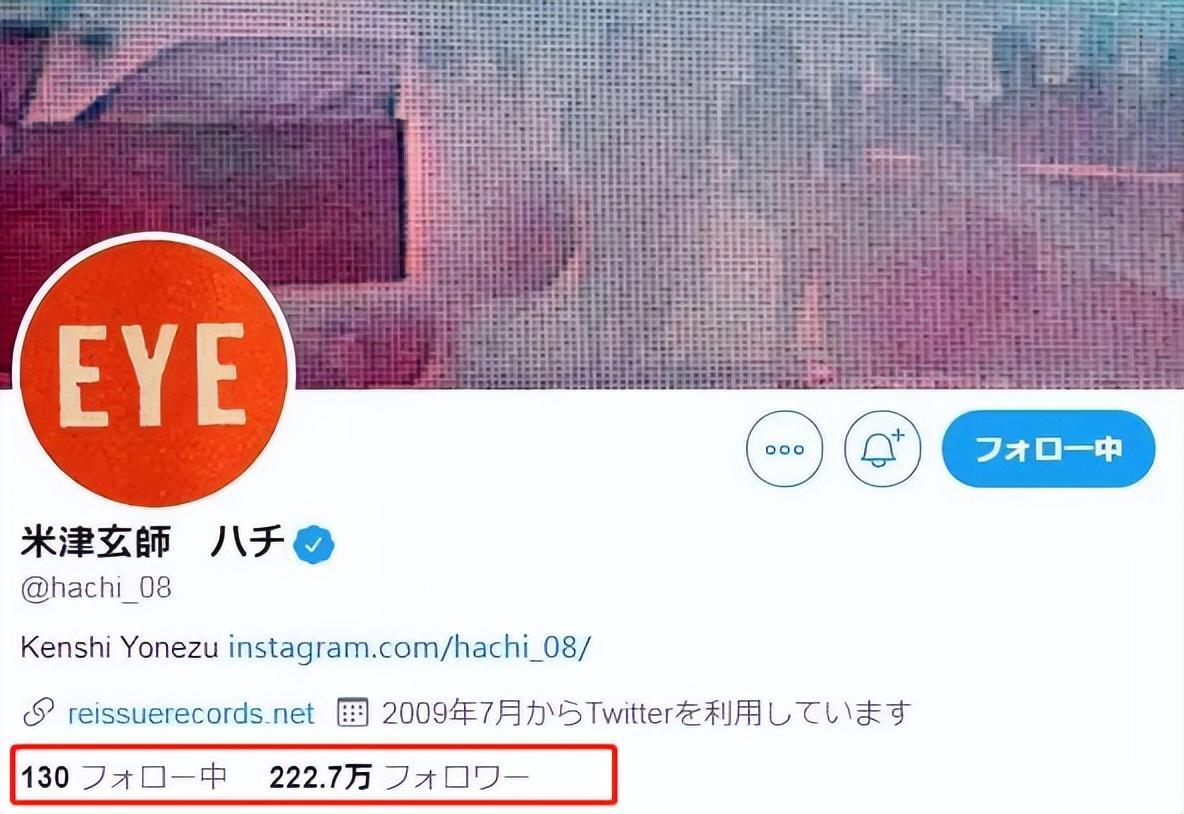 而米津玄师的官方推特,拥有超过200w人的粉丝关注数,歌曲下载量常年稳坐第一第二。