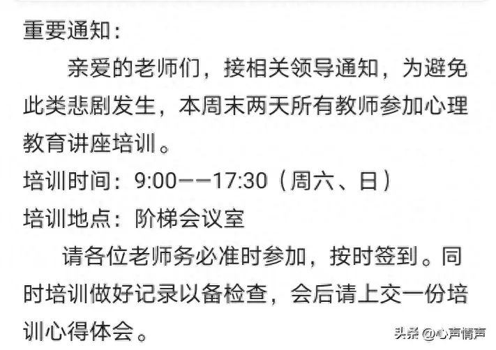 讽刺,悲哀!23岁教师不堪忍受压力而自杀,全体教师接受心理教育