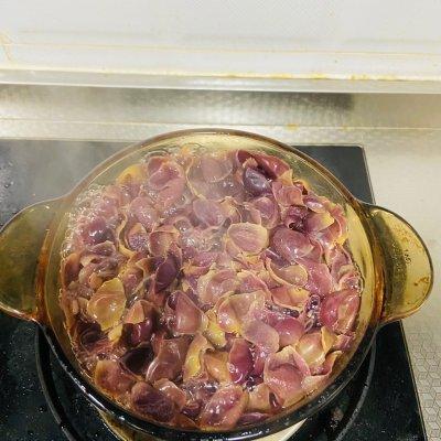 3、葡萄皮不要丢,煮开后转小火煮他个七八分钟后,捞出葡萄皮,加入适量冰糖,就是外头卖的葡萄汁饮料,一摸一样的口味。
