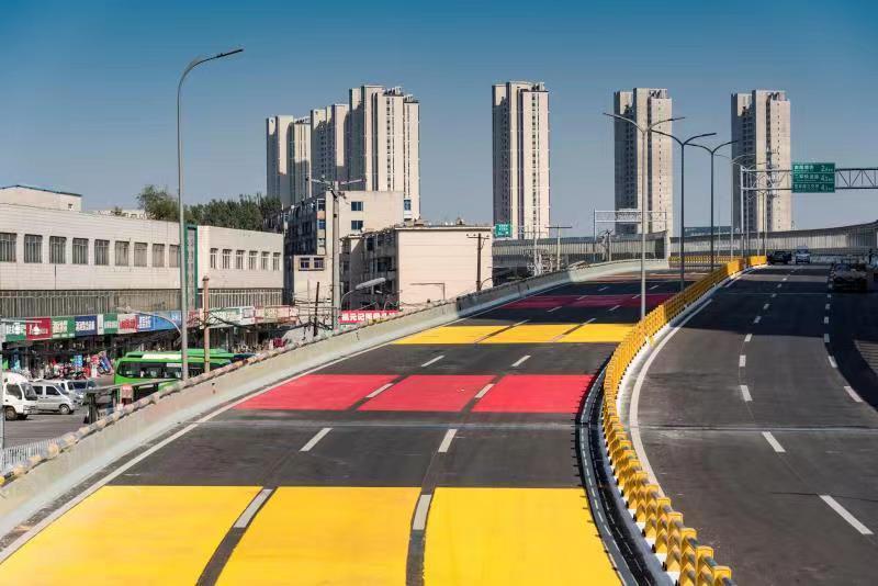 沈辽路高架桥工程指挥长曹阳介绍,沈辽路高架桥在建设过程中,采用了多项“东北首次”的新工艺。在东北地区桥梁建设中,首次采用采用新型磁力梳齿板结构伸缩缝,可有效降低车辆与地面摩擦产生的噪音;桥梁中防撞护栏采用全钢结构,用黑、黄反光漆突出道路轮廓,保障车辆夜间行驶安全;地面慢行系统首次采用彩色绿道,实现人非路权分明,绿道表面耐磨防滑,所用材料安全环保、色彩长久、并有水洗自洁功能。