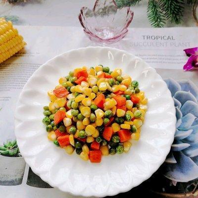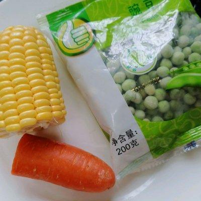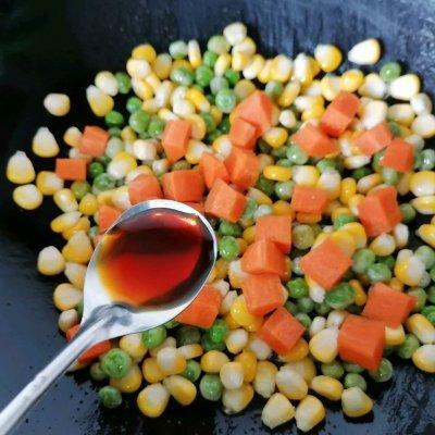 豌豆 适量玉米 半根胡萝卜 一小段油 适量盐 一勺生抽 一勺