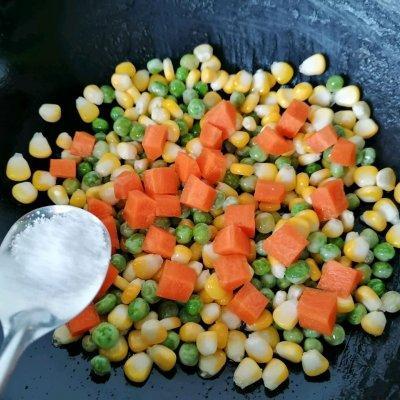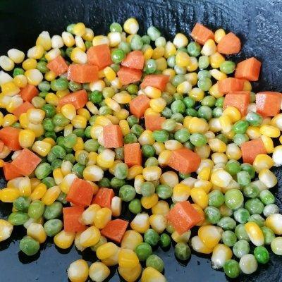 6、放入玉米粒一起翻炒