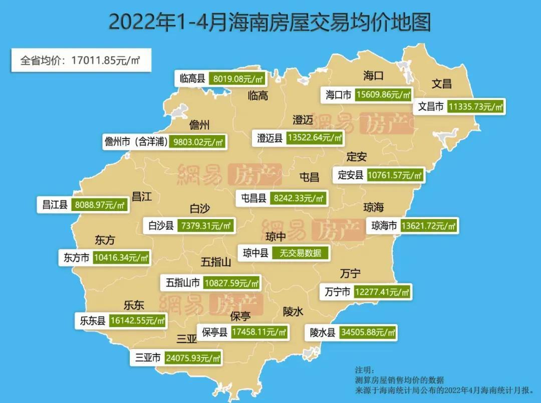 数据显示,2022年前4月,海南全省只有7个市县的房价出现上涨,同比涨幅在6.23%-27.16%之间。