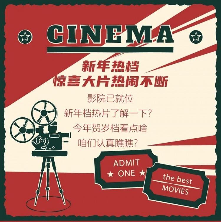 温馨提示:建议大家提前预约或线上购票;排队取票时与他人保持1米以上的社交距离;观影期间戴好口罩,牢记“三件套”“五还要”,保持良好的卫生习惯,开开心心看大片,健健康康过新年!