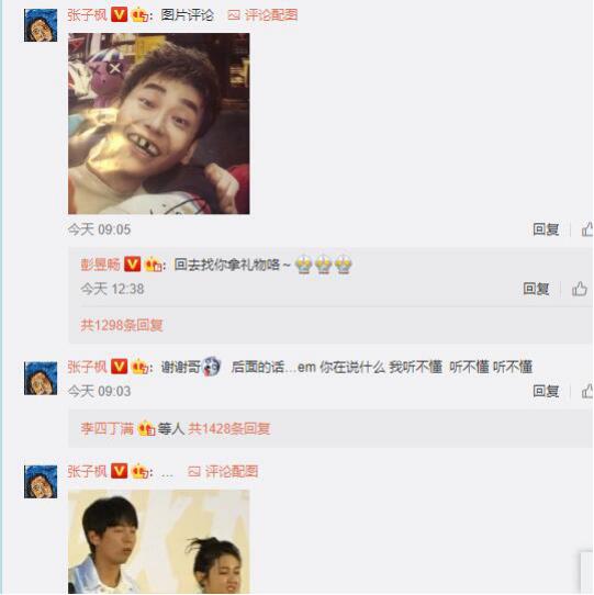 面对调皮的哥哥,妹妹张子枫也不甘示弱,在这条充满祝福的微博下,回应道:“谢谢哥, 后面的话…em你在说什么,我听不懂, 听不懂,听不懂”并配上了一张哥哥彭昱畅的丑照。两人在微博下的互动,也让粉丝们看的无比过瘾。调皮的二人让众人对他们感到更加亲近,无论二人在娱乐圈的成就有多大,说到底也不过都是两个不太大的孩子而已。